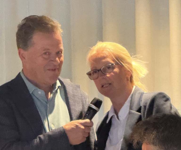 Konferansier Arne Hjeltnes og Hanne-Cecilie Sporsheim fra Juviksild. (Foto: Sildelaget/Roar Bjånesøy)