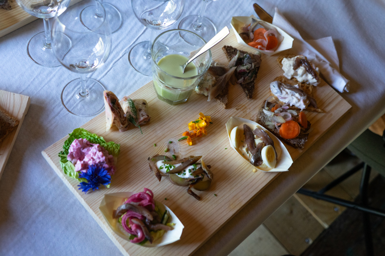 Rundt bordet kunne gjestene nyte et bredt utvalg silderetter, servert på en planke og på menyen stod blant annet: